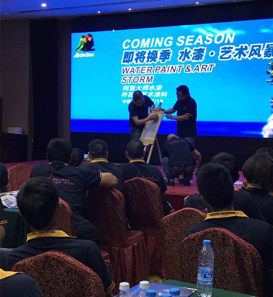 此外,在大会上,阿里大师集团董事长项兴浩与浙江区域经理刘建忠就阿里大师水漆、阿里大师GIOVANNI乔瓦尼艺术涂料进行了现场施工演示。获得了与会经销商朋友的一致好评,与会的经销商朋友都很看好阿里大师的后期市场;这无疑是对阿里大师发自内心的肯定。