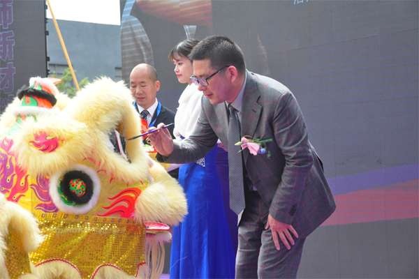 庆典期间,阿里大师化工集团董事长项兴浩、总经办经理王达贤共同为TASSANI塔萨尼中国生产研发基地及阿里大师新材料公司落成庆典醒狮点睛。