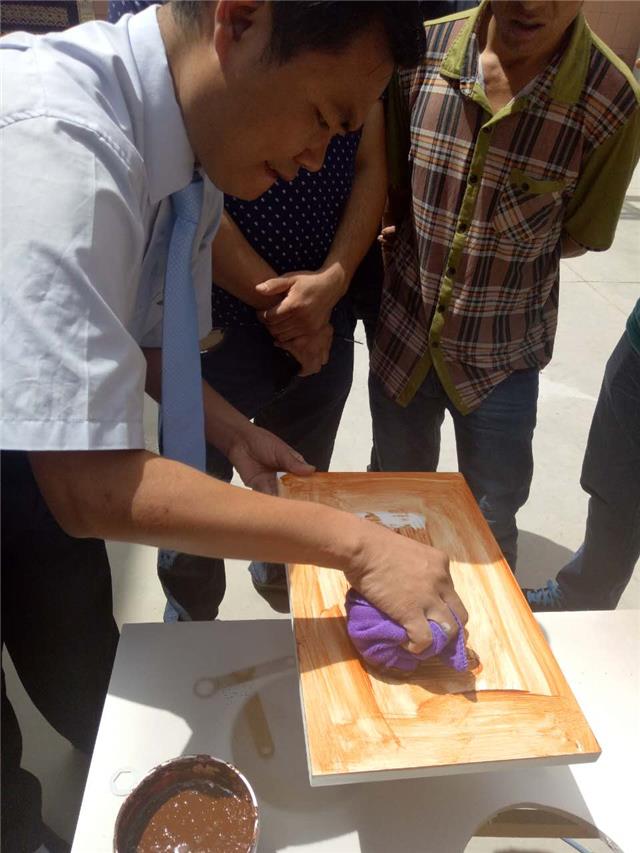 哈密当地人的环保意识愈来愈强,对涂料的环保性能极为重视,因此,本次的水漆技术交流推广会对水性木器漆等环保涂料进行了**介绍,并现场演示了水性木器漆的施工和详细的介绍了施工的注意事项。在场参与的大部分人员纷纷表示,要亲手尝试,现场掀起了一股水漆施工风潮。