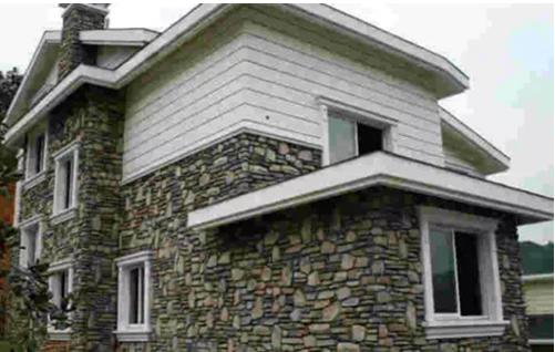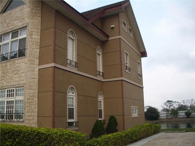 这栋别墅外墙装修也是使用的仿石漆的产品,散发出自然石纹理和立体感。窗户显得格外明朗,能够达到有效的通风换气,给人们带来舒适的生活体验。此外,三角形的红色屋顶设计不但更加巩固,以及很好的疏通雨水;与外墙的仿石漆颜色搭配也非常自然舒适。